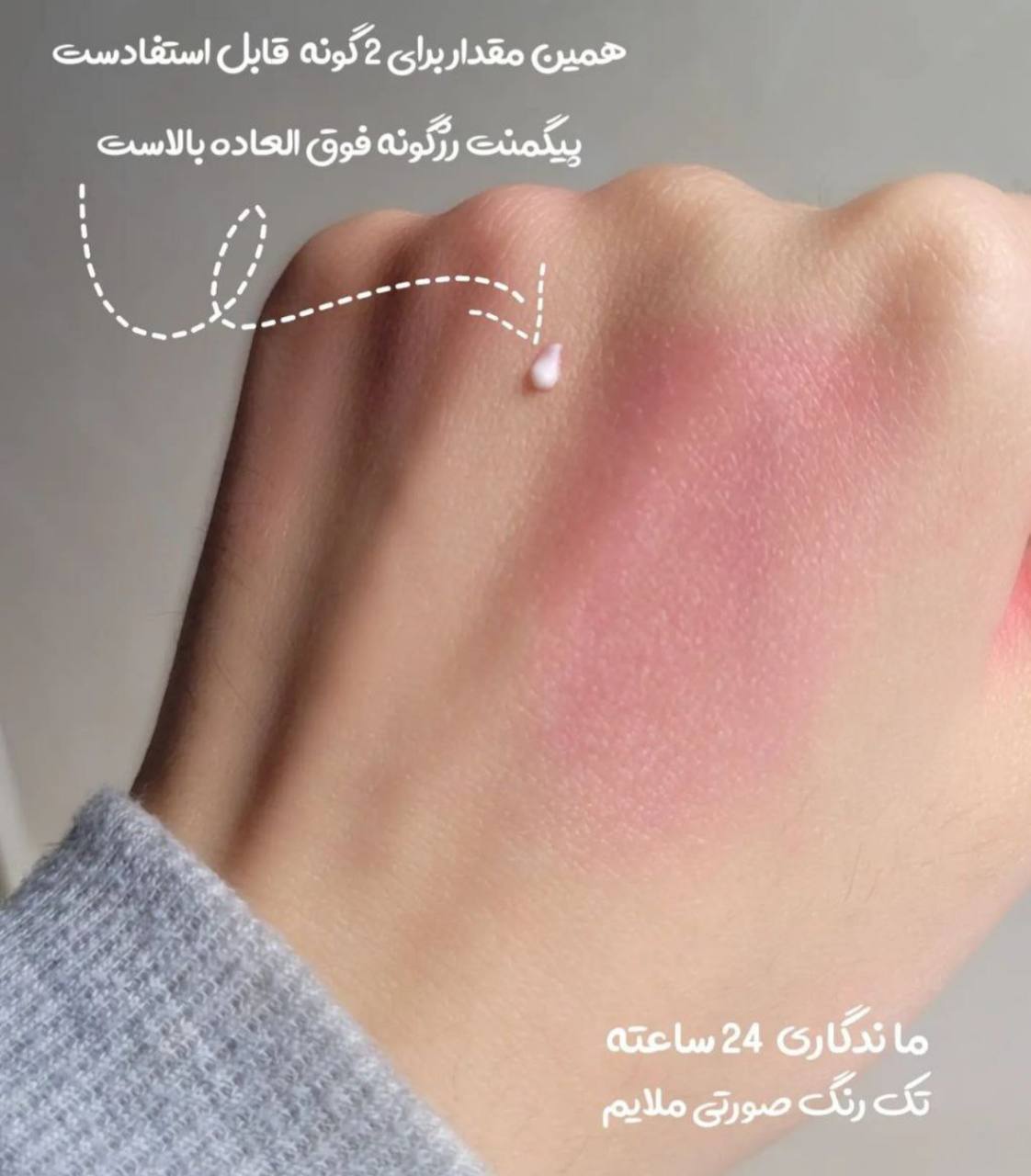 توجه داشته باشید که مقدار خیلی کمی روی گونه بزنید پیگمنتش فوق العاده بالاست