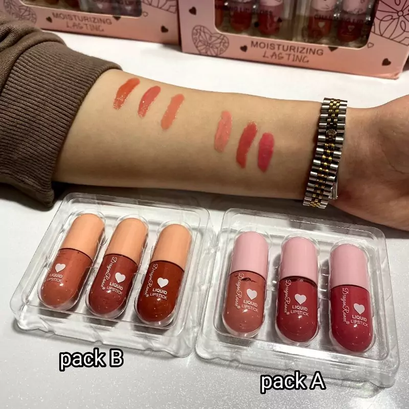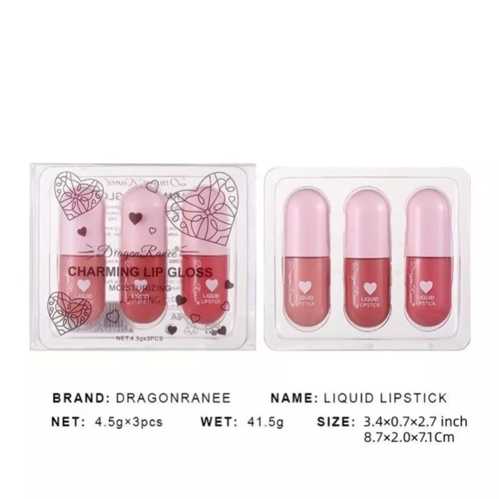 پک رژلب مایع سه عددی براق شایندار دراگون رانی مدل CHARMING LIP GLOSS
